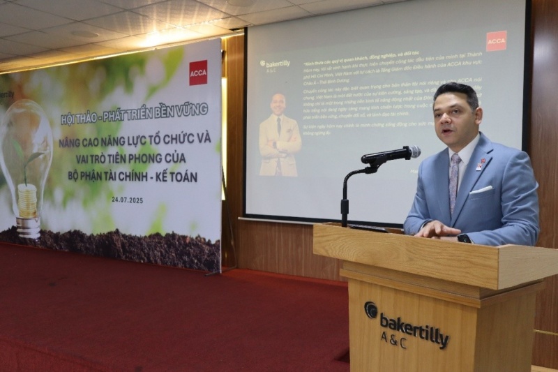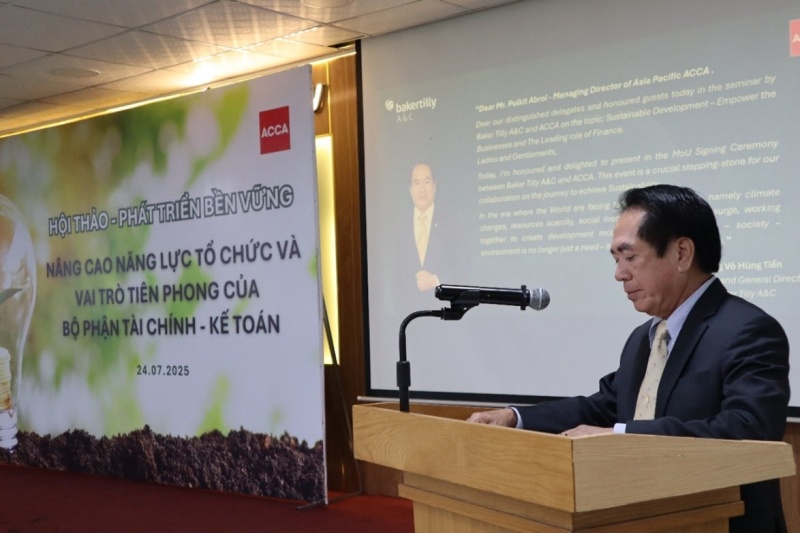 在研討會開幕式上,Baker Tilly A&C Consulting 的總經理Nguyen Ngoc Thanh先生強調了提升企業管理能力和適應能力的重要性。特別是,財務-會計部門需要在將可持續發展因素整合進組織的策略和運營中發揮核心作用。