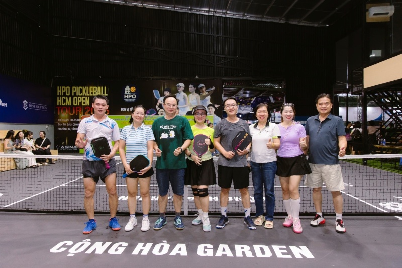 In the afternoon, the mixed doubles pickleball competition at Pickleball Cộng Hòa Garden brought exciting rallies featuring skillful coordination and unexpectedly humorous moments, including shots played with sandals and empty water bottles.