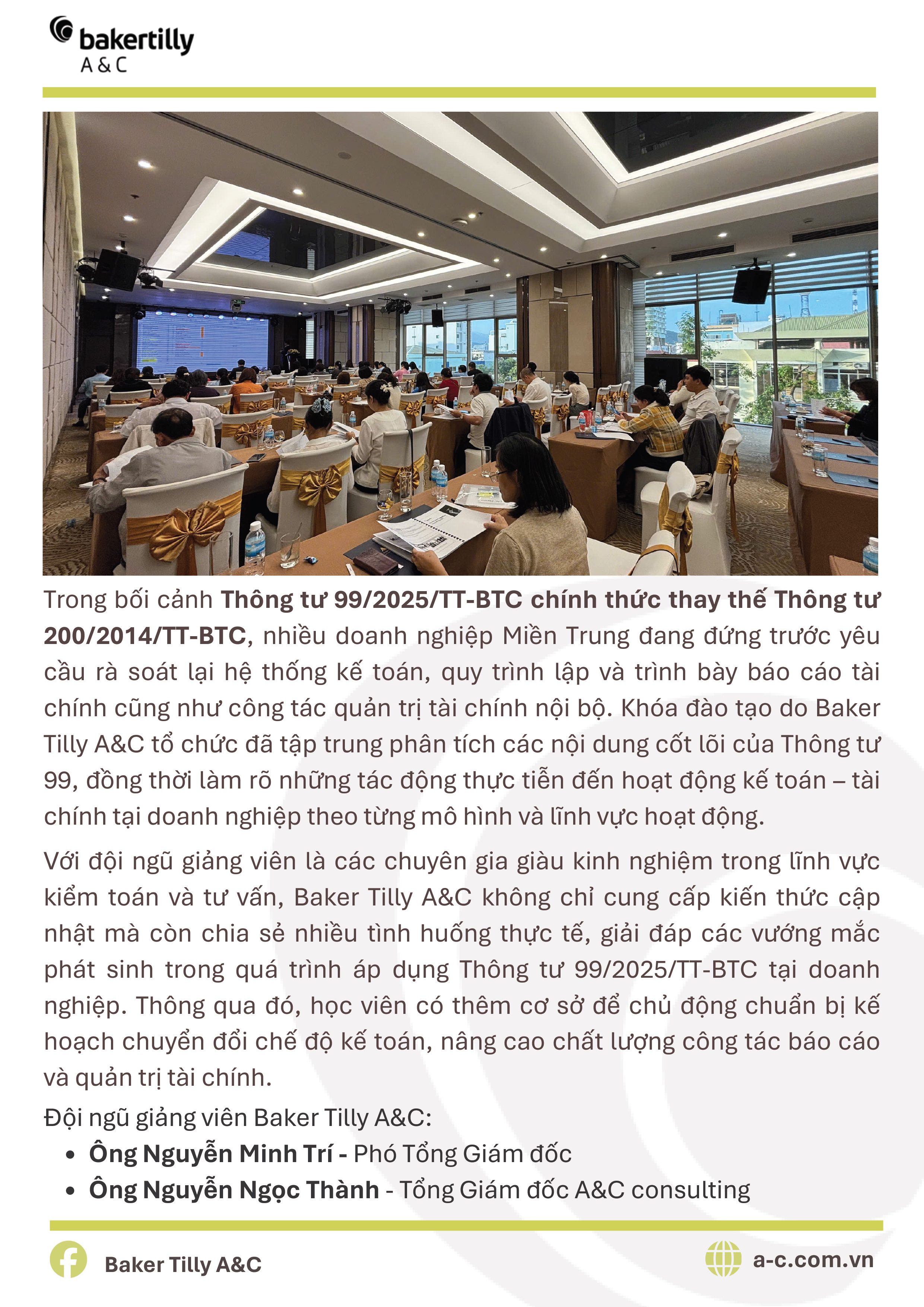 BAKER TILLY A&C TỔ CHỨC ĐÀO TẠO CHUYÊN SÂU THÔNG TƯ 99/2025/TT-BTC DÀNH CHO DOANH NGHIỆP KHU VỰC MIỀN TRUNG