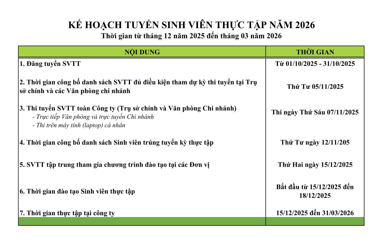Sinh viên thực tập: Trợ lý Kiểm toán báo cáo tài chính, Trợ lý Tư vấn