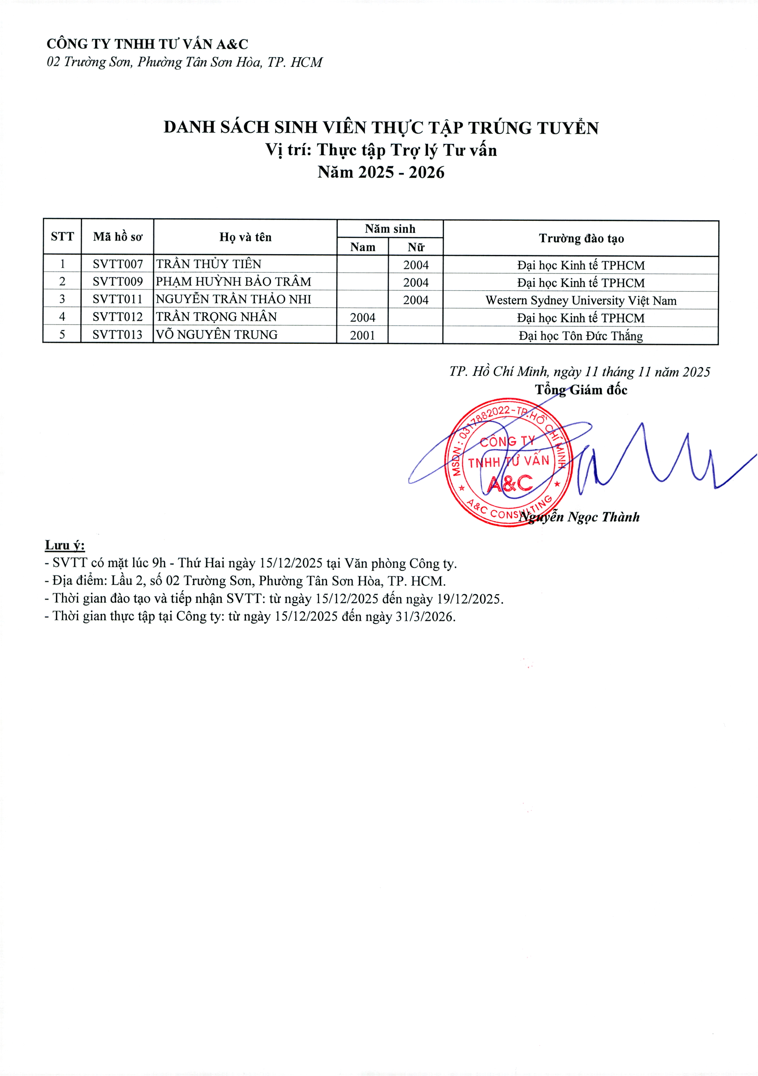 Kết Quả Tuyển Dụng