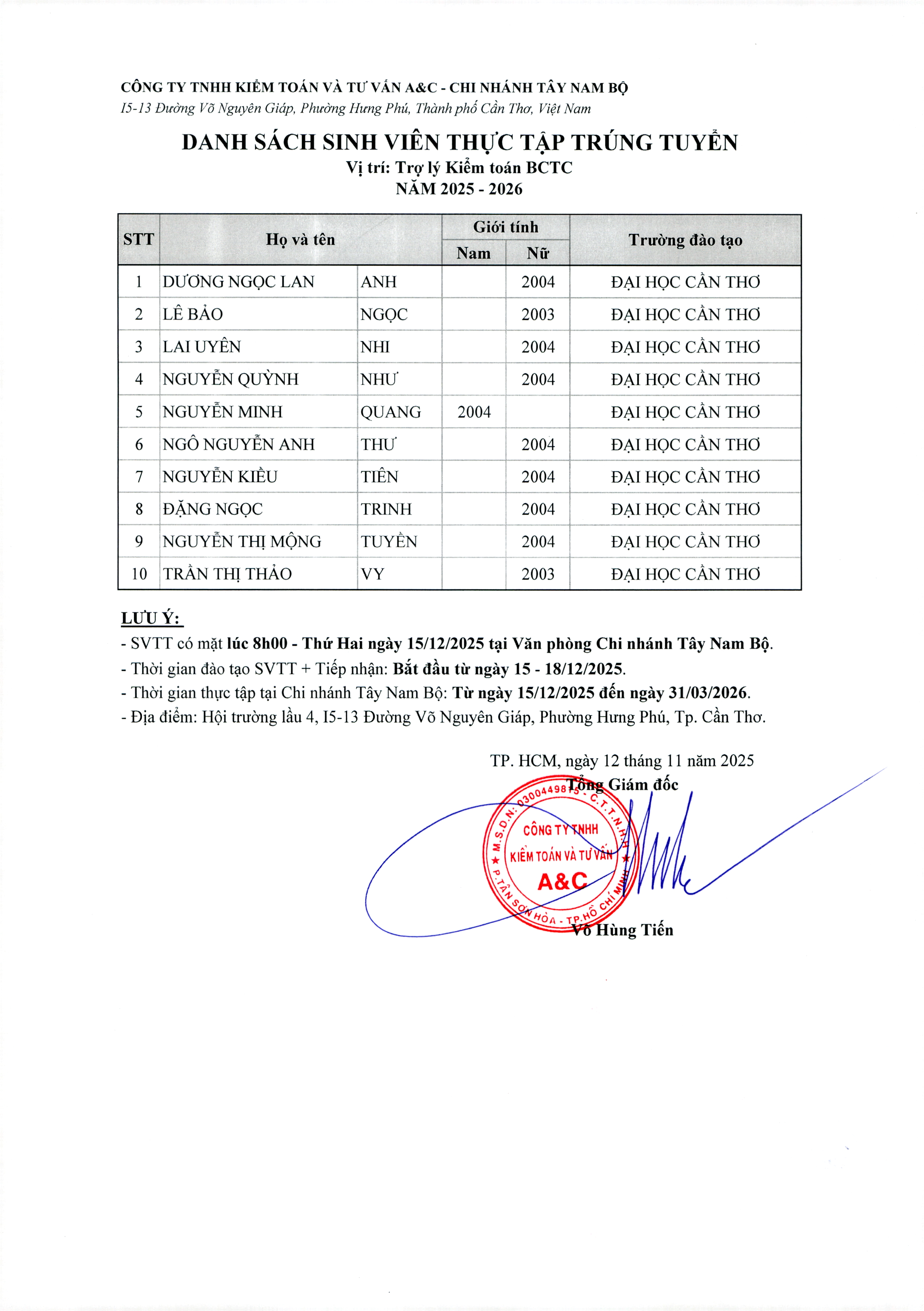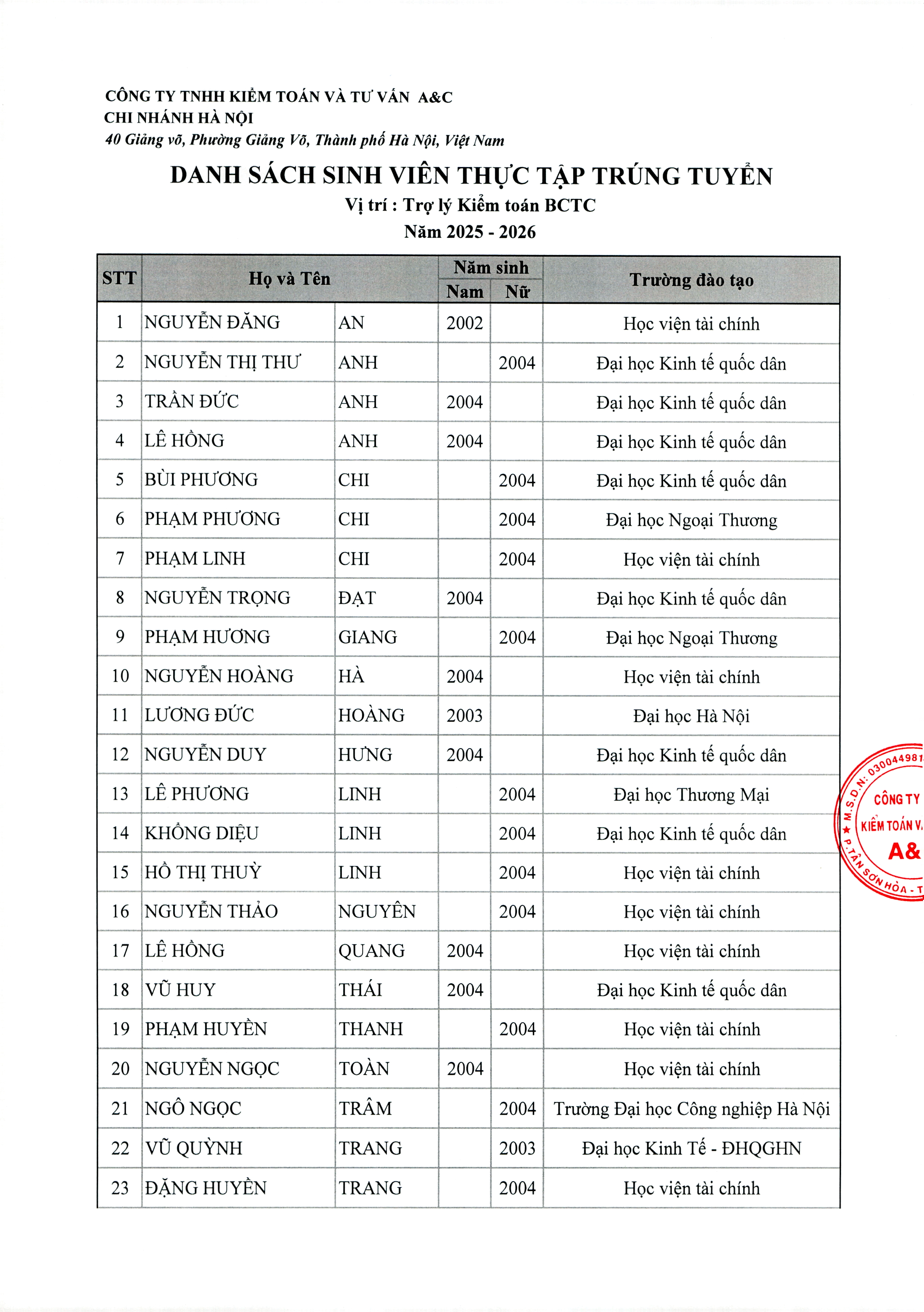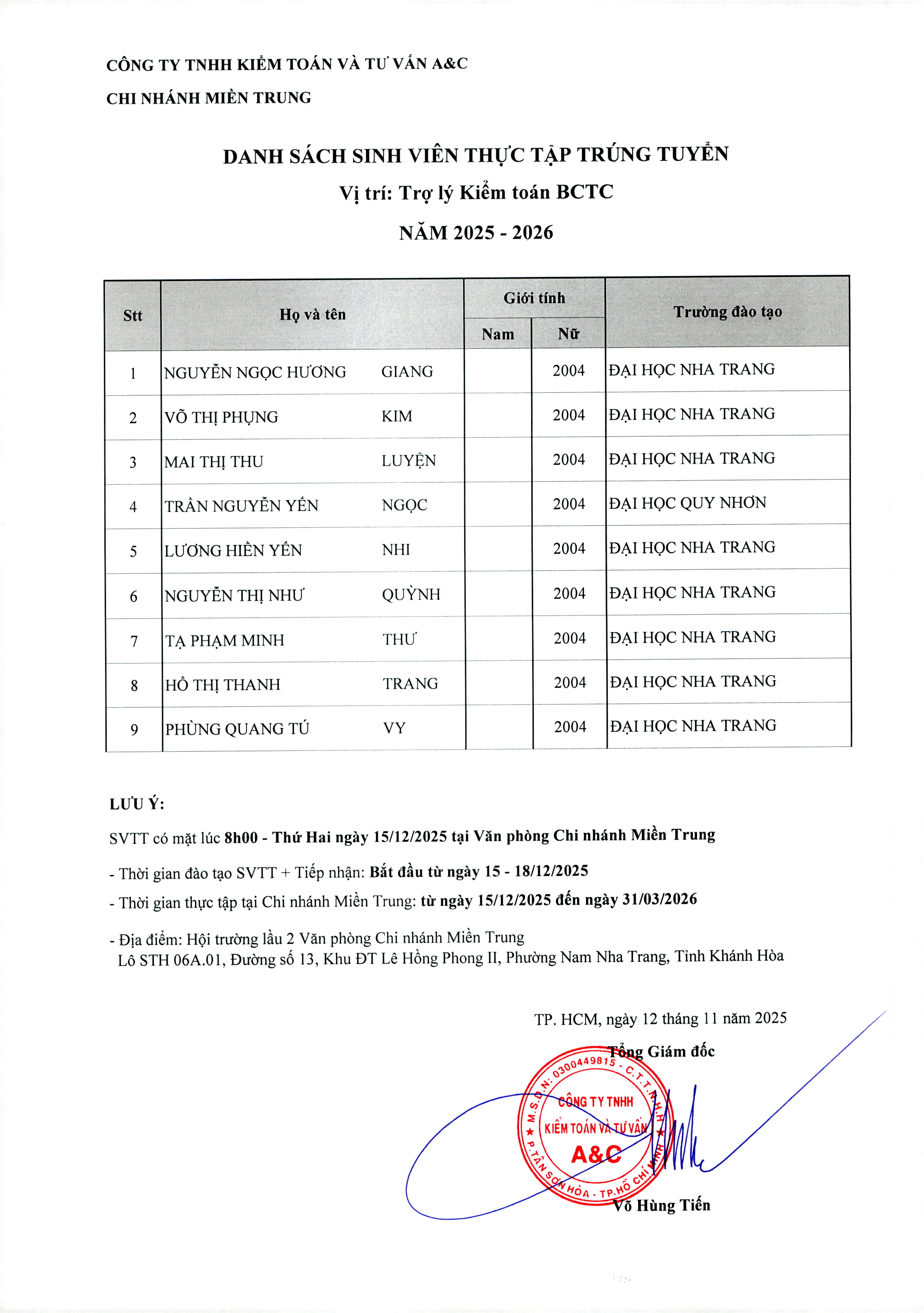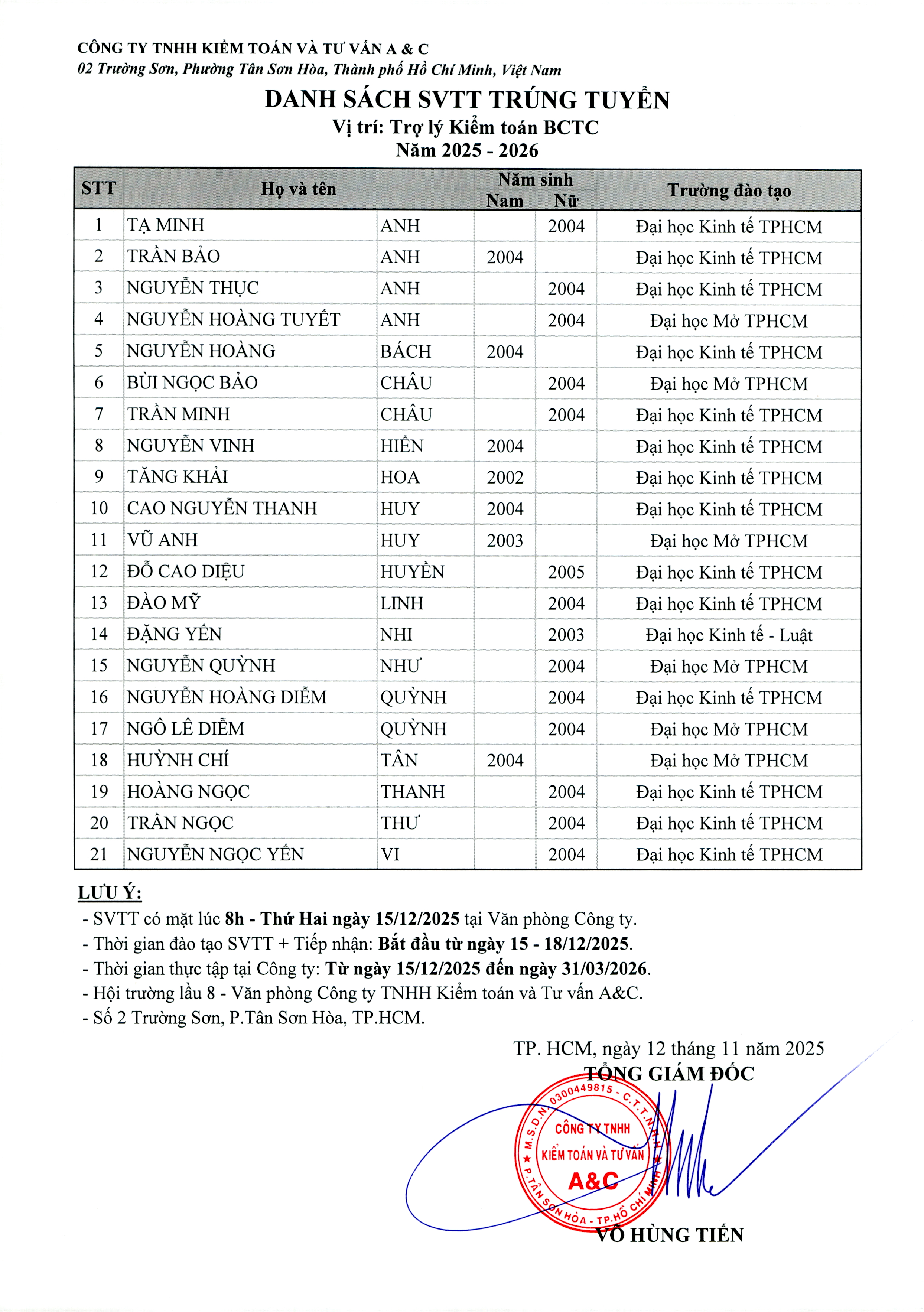Kết Quả Tuyển Dụng