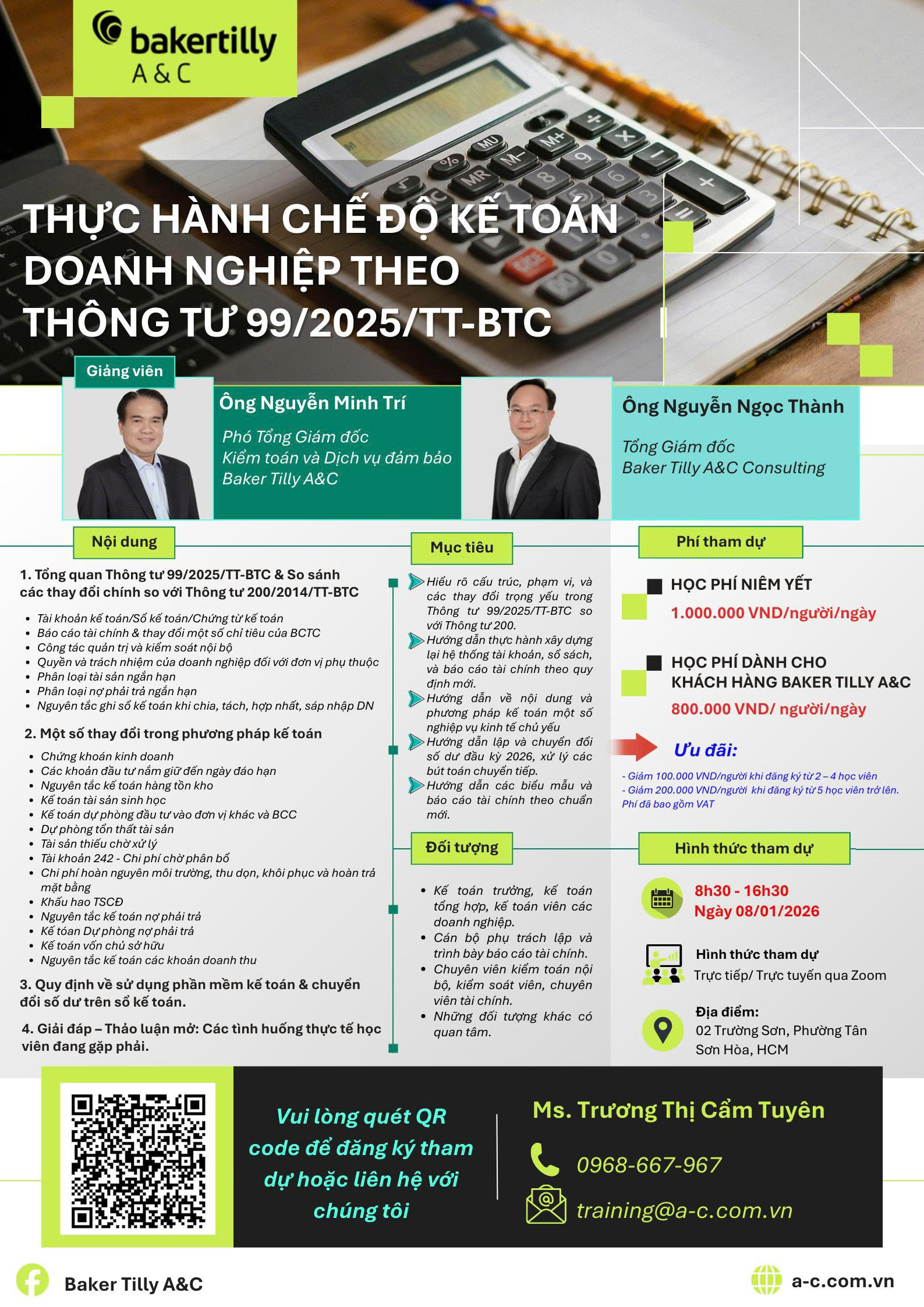 Thực hành chế độ kế toán doanh nghiệp theo Thông tư 99/2025/TT-BTC